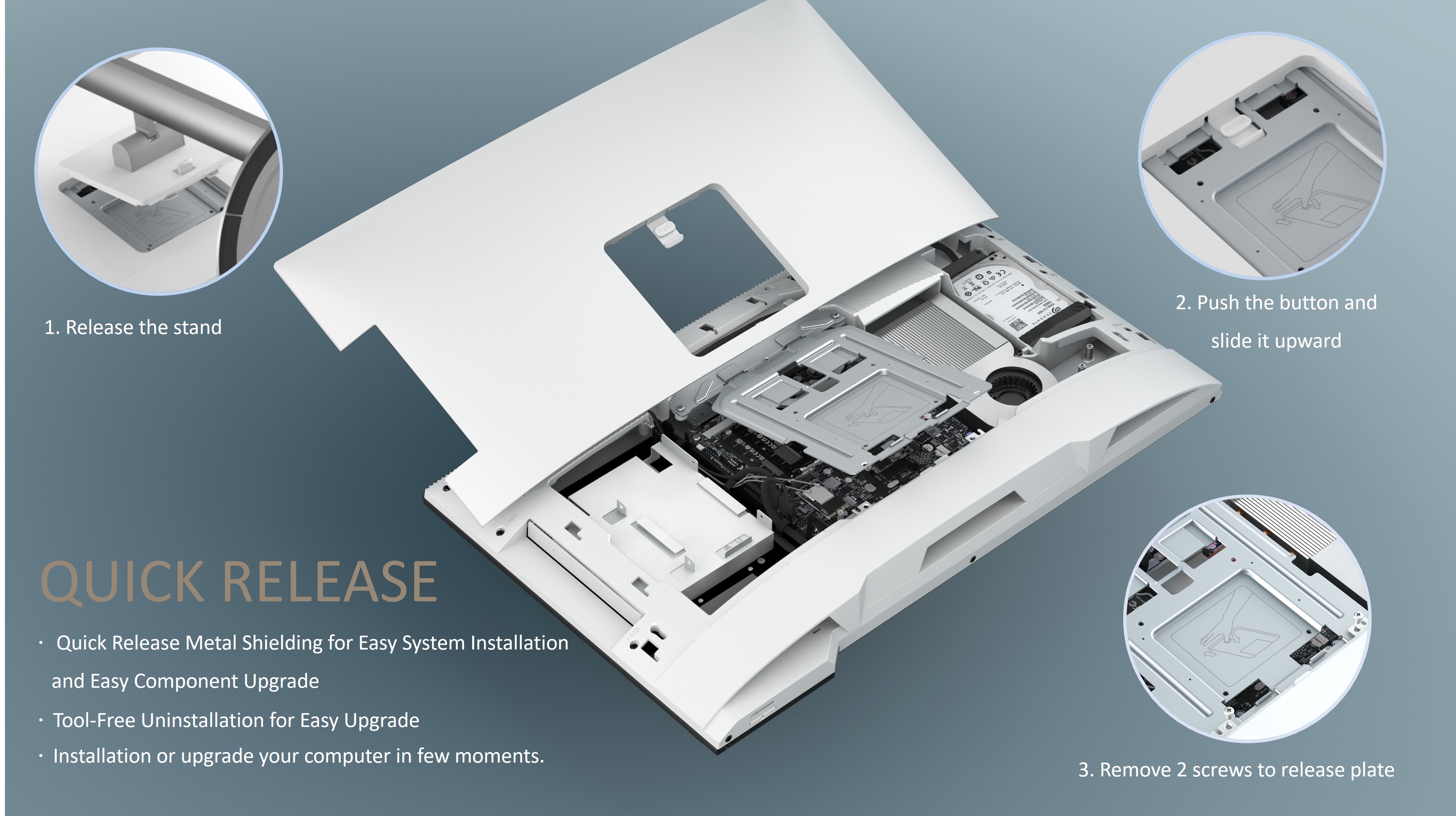 Exclusive FeaturesToolless Chassis. Easy assemble CPU, Memory, SSD. Quick Connect HDD Installation. Internal Cable Management.