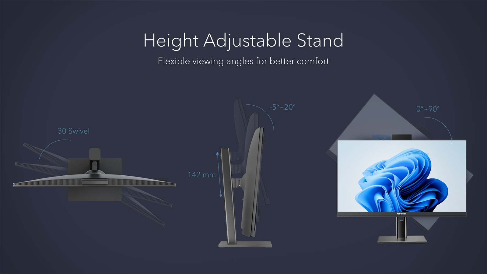 Adjust Up to 142mm Elevation: 142 mm Tilt: -5°-20° Swivel: -30°-30° Rotation: 0°-90° |